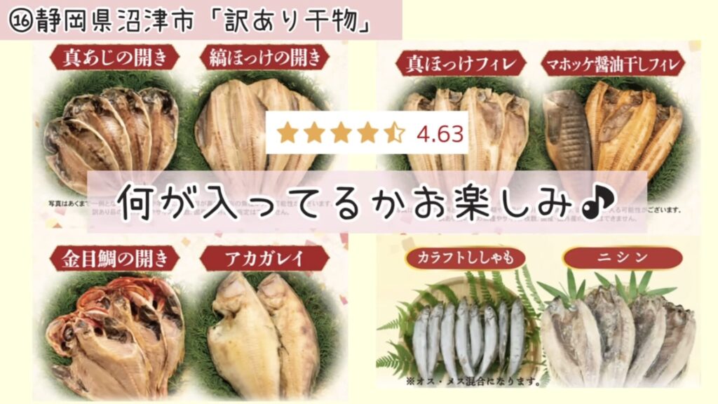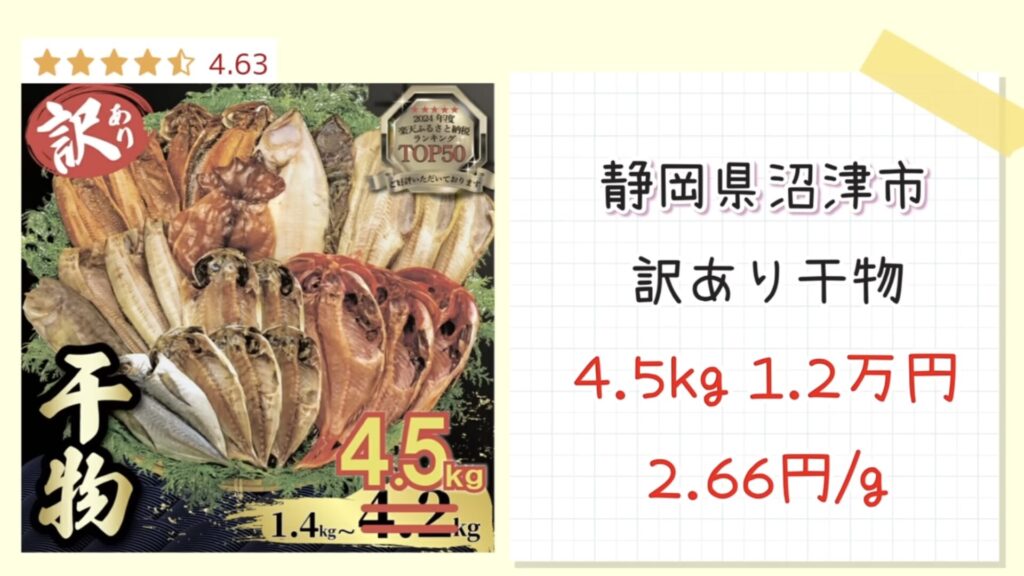 静岡県沼津市訳あり干物4.5kg、1.2万円。