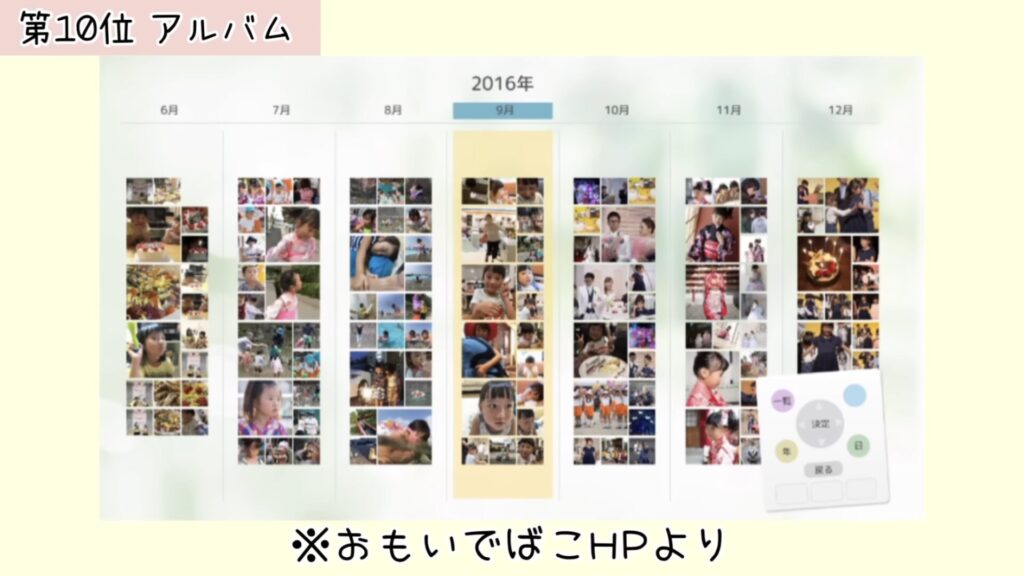 自動的に写真を整理しカレンダー上に表示してくれるので見るときも便利。3万円は安い!と今では思っています。