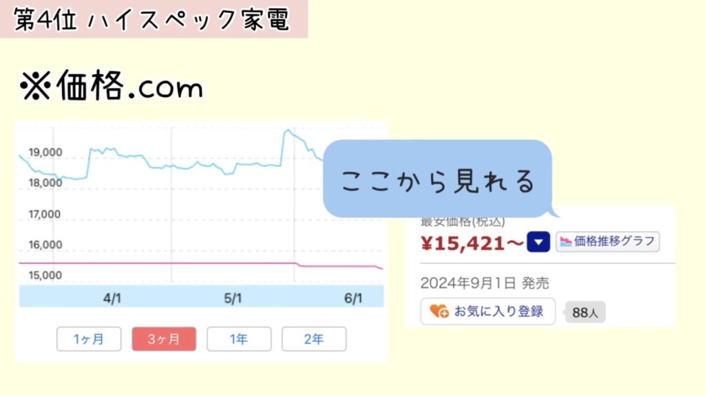 ちなみに家電を選ぶときのポイントは価格.comなどで悪い評価の口コミなどもチェックすることと、価格推移のグラフを参考にすること。
