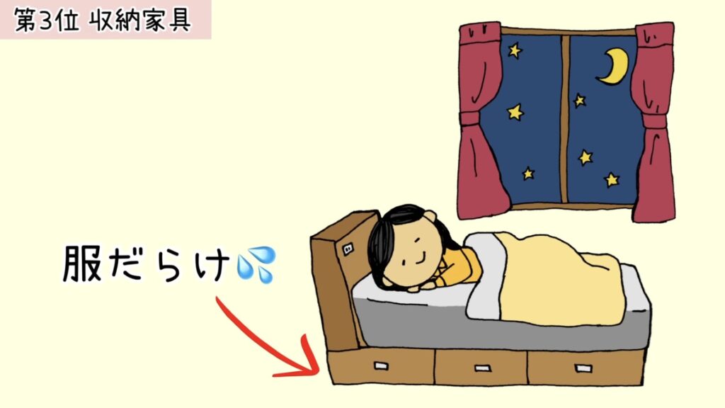 引き出し付きのベッドまで買って、いかに上手に収納するか考えていました。